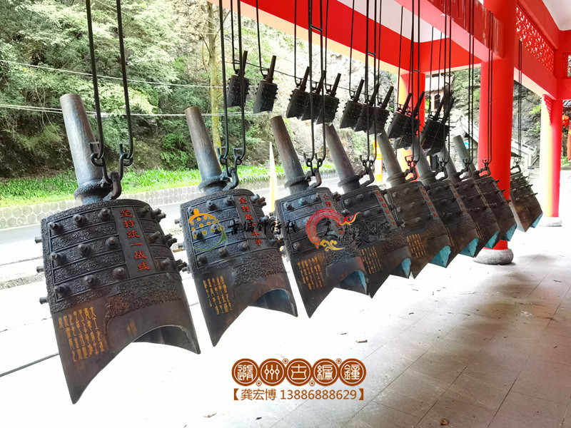 2023年7月,隨州古編鐘公司制作的10件大型曾侯乙甬鐘及一組旋律編鐘,在堯治河旅游景區(qū)完成安裝工作。當(dāng)悠悠鐘聲回蕩山谷時,它那古樸渾厚的樂音,激蕩起人民對黨的赤誠忠心,又仿佛在訴說革命先輩對未來的期望。這次將編鐘作為文化的載體,展現(xiàn)了中華歷史的厚重和新時代征程的拓印,這份紀(jì)念豐富了景區(qū)的文化內(nèi)涵,映襯了自然景色,讓游客在旅途中感受山水古樂的酣暢淋漓。