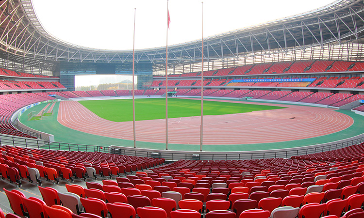 為鄭州奧體中心提供了乒乓球臺(tái)、運(yùn)動(dòng)地板、體育場(chǎng)座椅、地膠、籃球架、