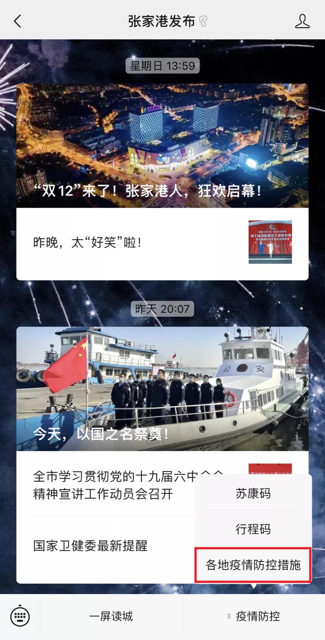 最近要出門,不知道出發(fā)地、目的地都有什么疫情防控政策措施?別著急,兩步教你查詢!在“張家港發(fā)布”微信菜單欄打開“國(guó)務(wù)院客戶端”小程序,進(jìn)入后搜索“各地疫情防控政策措施”,即可搜索查詢相關(guān)信息!